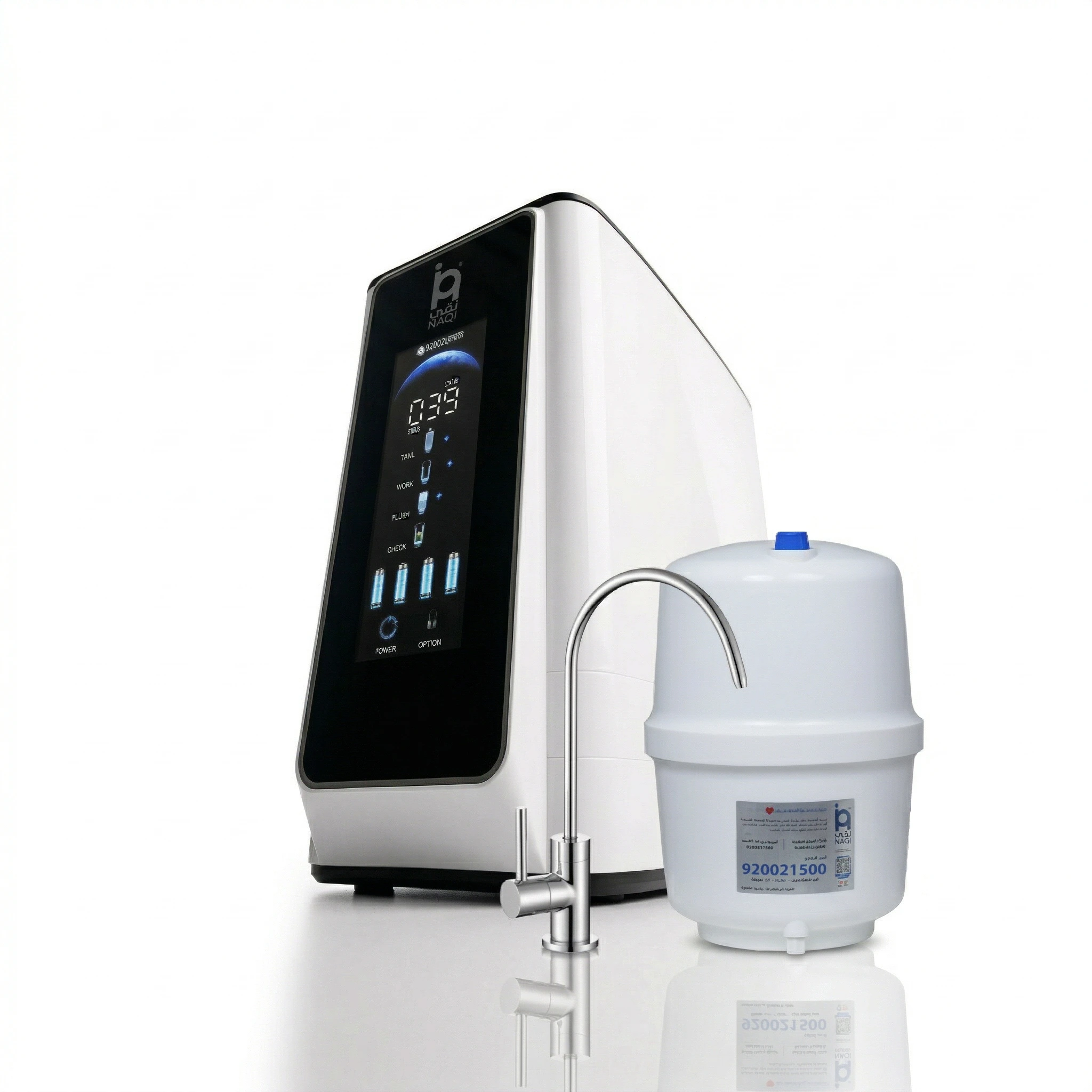 فلتر مياه نقي ديجيتال سوبر جهاز تحليه منزلي صحي وآمن يركب بالمطبخ تحت المجلي يغنيك عن شراء القوارير المعبأة، مكون من 6 مراحل