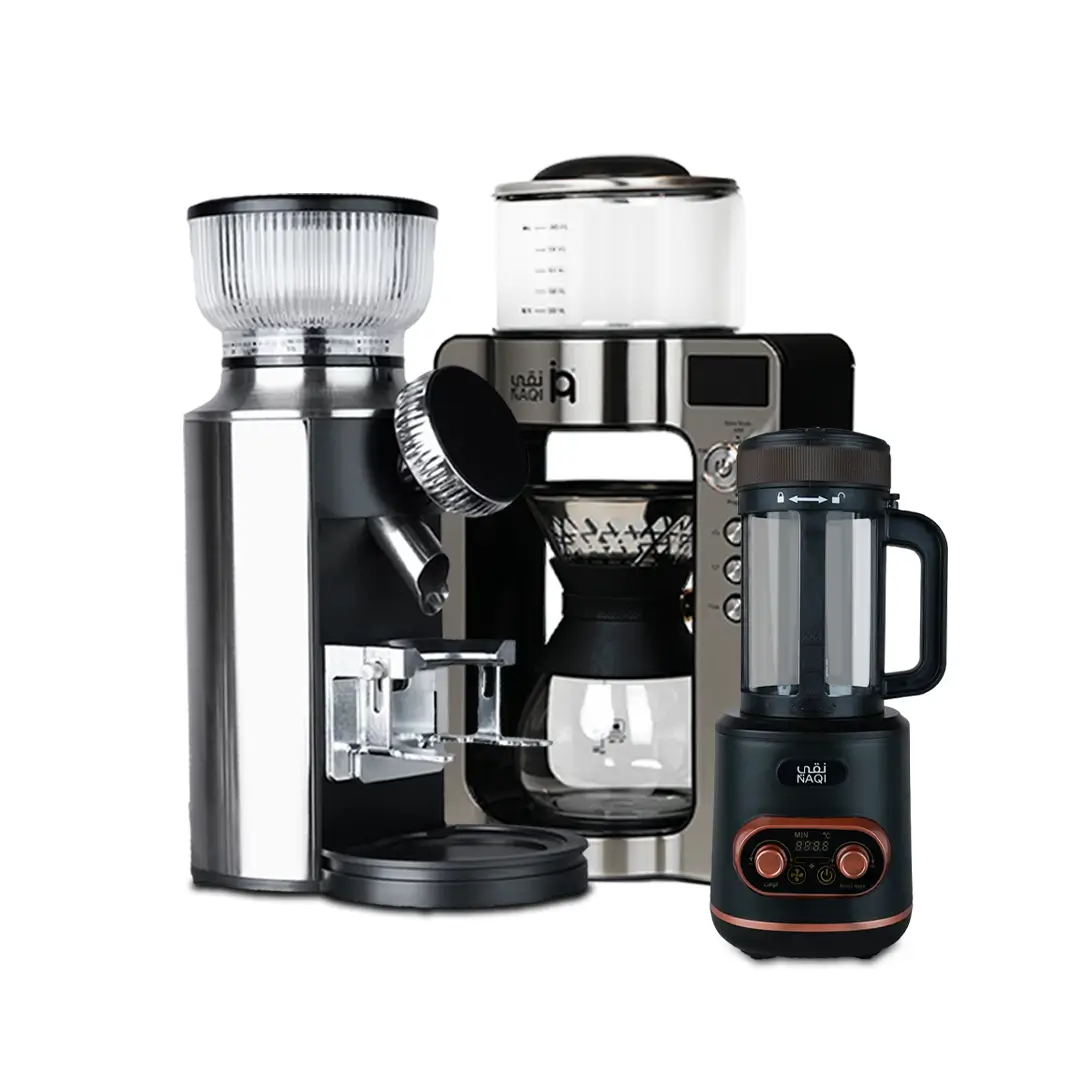 قهوة مقطرة + مطحنة القهوة + حماصة قهوة